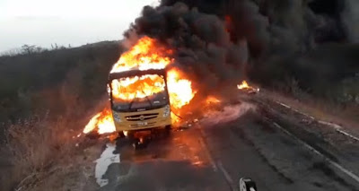 Um ônibus escolar pegou fogo na noite desta segunda-feira (1º), quando fazia o transporte de estudantes do município de Granja, na Região Norte, interior do Ceará. O ônibus transportava cerca de 38 alunos, de 13 a 18 anos, da Escola Agrícola de Granja e tinha como destino o Distrito de Parazinho.