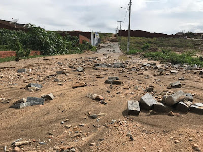 Uma chuva de cerca de 178 milímetros destruiu ruas de diversos bairros do município de Farias Brito, na Região Cariri do Ceará, na manhã desta quinta-feira (6). A água invadiu casas, a praça da cidade e também deixou animais mortos, como dezenas de galinhas que estavam em uma propriedade. Conforme a Fundação Cearense de Meteorologia (Funceme), a chuva registrada na cidade é a maior precipitação fora da quadra chuvosa do ano no estado.