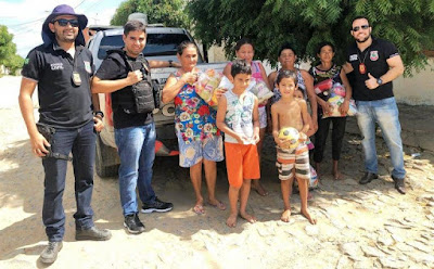 Em Quixeramobim, tendo à frente o delegado Hugo Leonardo, além de mais de 100 quilos de alimentos para a Casa do Ancião, ele , os inspetores e escrivães arrecadaram ainda roupas e brinquedos. Em seguida visitaram os assentamentos Irmã Teresa, Renascer de Canudos e Fazenda Betânia, surpreendendo principalmente as crianças.