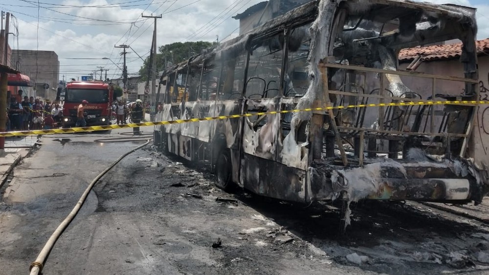 Criminosos explodiram uma bomba em um viaduto na cidade de Caucaia, na Região Metropolitana de Fortaleza, e incendiaram ônibus do transporte coletivo da capital cearense durante a madrugada desta quinta-feira (3). Além disso, carros do Departamento de Trânsito de Horizonte e uma van do transporte alternativo foram queimados na Região Metropolitana.