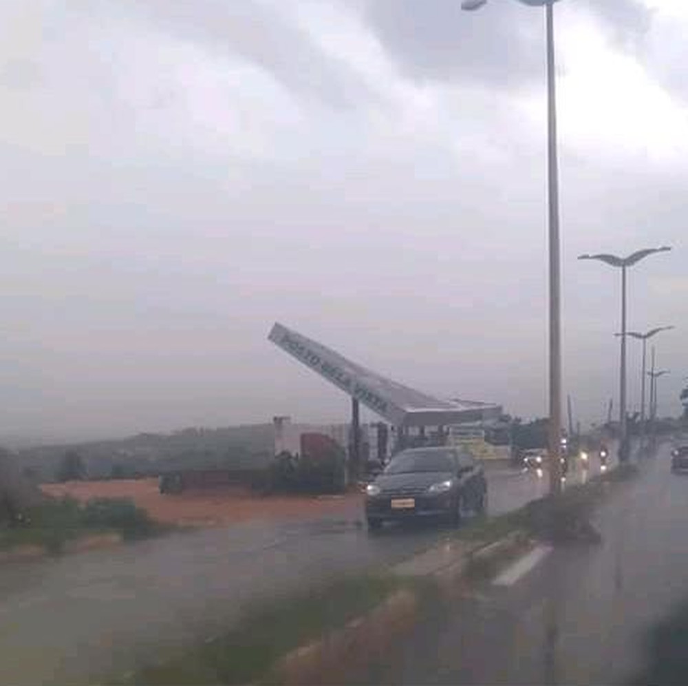 Parte do teto de posto de combustível caiu, no fim da tarde desta segunda-feira (28), por conta de fortes ventos que atingiram a cidade do Crato, na Região do Cariri do Ceará. O posto está localizado na Avenida Perimetral Dom Francisco, no Bairro São Miguel.