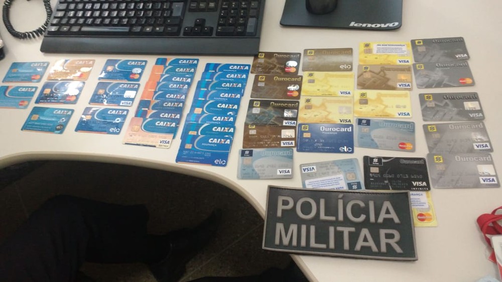Com os suspeitos, também foram apreendidos 47 cartões de crédito e débito, celulares e aproximadamente R$ 2,3 mil em espécie. Tudo encontrado no fundo do painel falso do carro utilizado pelo grupo. O veículo também foi levado pela polícia.