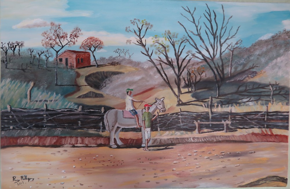 Autodidata, ele já pintava desde adolescente, mas em 2013 o avanço da doença o impediu de segurar o pincel com as mãos. O jeito foi adaptar-se. Passou a usar a boca para segurar os pinceis finos e definir os detalhes das telas que retratam o cotidiano do sertão. Graças ao tratamento especializado de fisioterapia e a medicamentos, médicos dão esperança de que um dia ele possa voltar a usar as mãos para se expressar artisticamente.