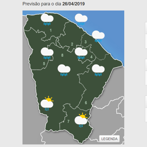 Nebulosidade variável com eventos de chuva em todo o estado.