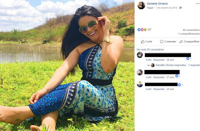 “Porque isso meu Deus, tanta tristeza. A ficha não caiu ainda. Você tão alegre, tão cheia de vida. Ontem quando soube do seu desaparecimento eu não quis acreditar. Pedi a Deus pra que fosse um engano, orei tanto e pedi pra que tudo se resolvesse o mais rápido possível. Choro por sua partida, meu coração está despedaçado. Mas levo comigo o seu lindo sorriso Danielle Oliveira””, escreveu um amigo da vítima.