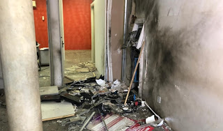 Enquanto parte do grupo explodia os caixas, outra parte atacava com tiros o destacamento da Polícia Militar. Com a explosão, o interior da agência ficou destruído e a porta de vidro, estilhaçada.