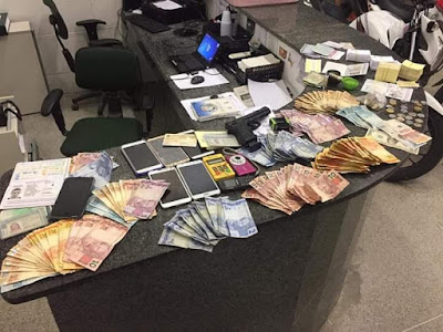 A Polícia apreendeu também duas motocicletas, um simulacro de arma de fogo e uma pequena quantidade de maconha que era de uso pessoal dos agiotas.