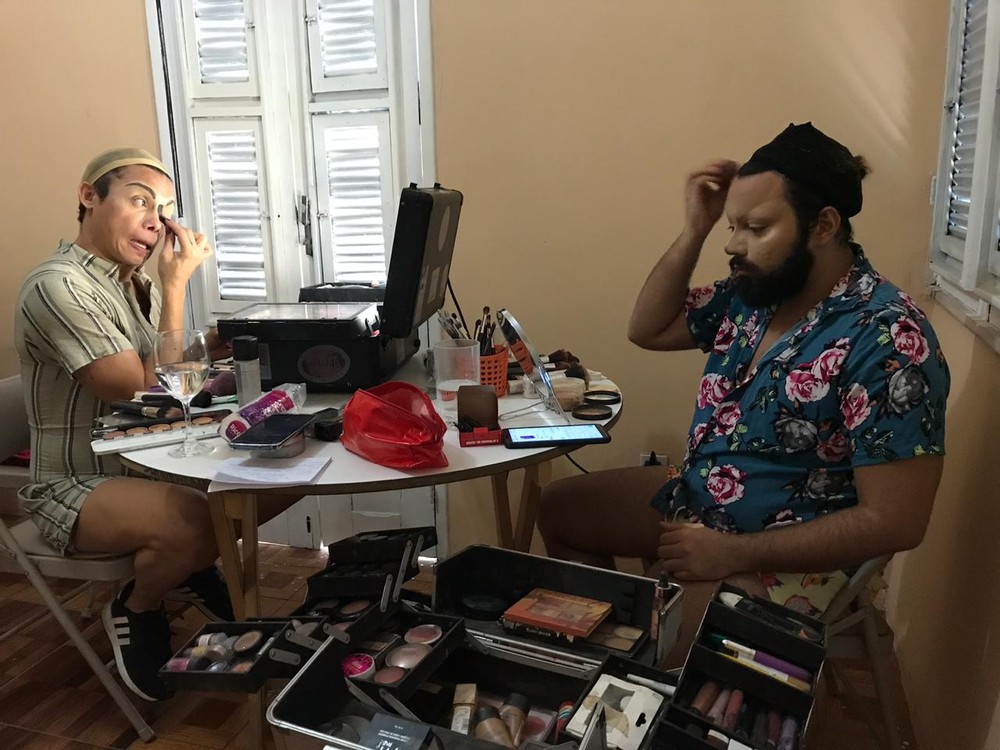 As lembranças dos outros anos são pinçadas durante o processo de produção da Mulher Barbada e de Gisele Almodóvar. São pelo menos duas horas e meia entre montagem do visual, aquecimento vocal e últimos acertos em relação ao repertório musical, conforme acompanhou o G1. Com muito critério, preferem ficar responsáveis pela própria maquiagem.