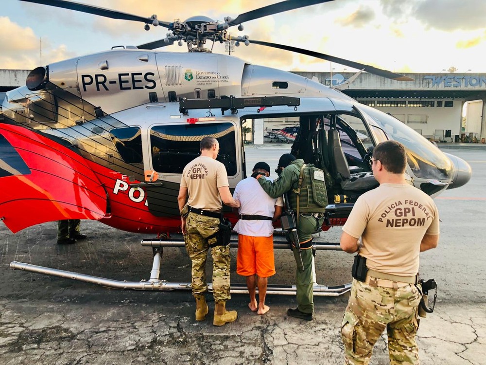 A transferência do paraibano Ednal Braz da Silva, o ‘Siciliano’, de 45 anos, foi realizada em um helicóptero da Coordenadoria Integrada de Operações Aéreas (Ciopaer), da Polícia Militar do Ceará (PMCE), com apoio da Polícia Federal (PF). A Justiça determinou a inclusão do detento no Sistema Penitenciário Federal após pedido da própria PF.