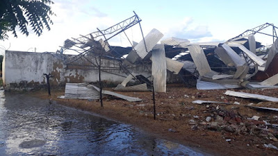 Ainda segundo testemunhas, o vento também arrancou o teto das quadras esportivas de duas escolas do município.