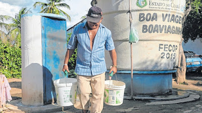 “A gente gasta R$ 32 para encher a caixa-d’água. Antes do açude Vieirão secar de vez, há cinco anos, a conta era menos da metade. A gente esperava que quando a adutora do Umari começasse a funcionar, em dezembro do ano passado, esse problema acabasse, mas o que está acabando mesmo é o dinheiro da aposentadoria”, reclama a moradora do bairro periférico, Mazinha Soares Torres, 66 anos.