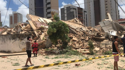 Um prédio de sete andares desabou na manhã desta terça-feira (15) no cruzamento da Rua Tomás Acioli com Rua Tibúrcio Cavalcante, no Bairro Dionísio Torres, em Fortaleza.