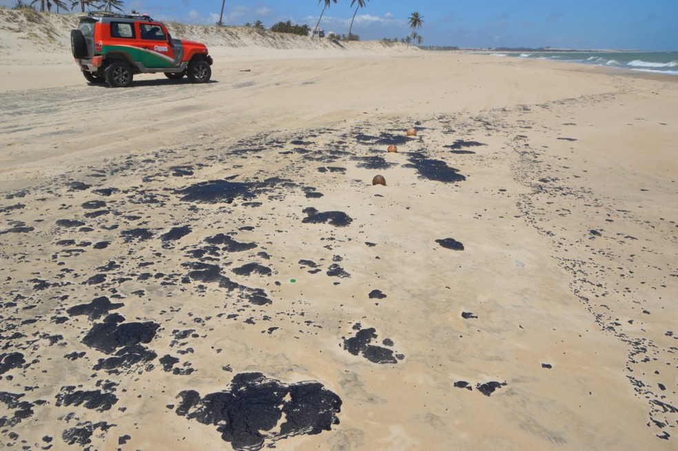 Seis equipes da Marinha percorrem os 573 km do litoral cearense, diariamente, três vezes por dia, de acordo com a Capitania dos Portos do Estado. As manchas de óleo, identificadas como petróleo cru, surgiram no litoral nordestino no fim de agosto. O Governo Federal investiga a origem do material para punir os responsáveis. Um navio grego é suspeito de ter provocado o vazamento da substância no mar.