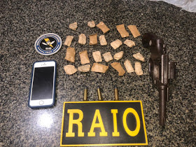 A equipe do CPRaio de Mombaça, realizou uma prisão por tráfico de drogas e posse de arma de fogo por volta das 19h25 dessa segunda-feira, 04, a equipe fazia patrulhamento de rotina quando observou dois indivíduos em atitude suspeita em uma moto de cor preta, que passaram no sinal fechado e empreenderam fuga.