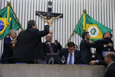 Dois deputados estaduais do Ceará trocaram agressões verbais e precisaram ser contidos durante a sessão plenária desta terça-feira (10), na Assembleia Legislativa do Estado. A confusão envolveu Osmar Baquit (PDT) e Leonardo Araújo (MDB) e foi motivada por disputas de poder no interior do estado.