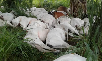O fazendeiro disse que essa é a primeira vez que ele perde gado devido a uma descarga elétrica e está em alerta devido ao período de chuva.