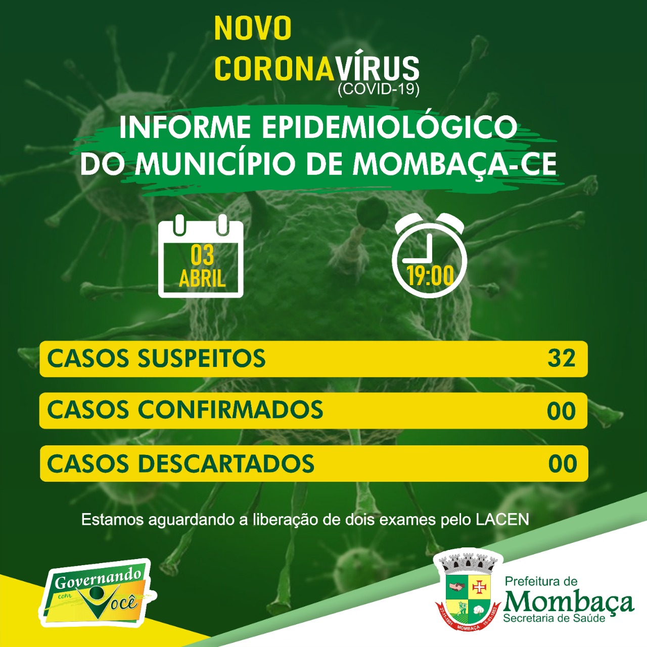 O Boletim Diário informativo divulgado nesta noite (03) dá conta de 32 casos suspeitos de covid-19, onde os mesmos estão em isolamento social. Navegação de Post MOMBAÇA: Sobe para 19 o número de casos suspeitos por covid-19 Ônibus clandestinos de Mombaça são apreendidos chegando de São Paulo