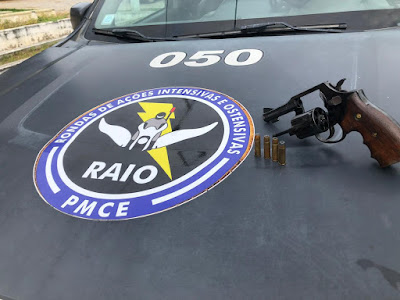 Por volta das 08:00h, de ontem (15), a VTR 050 em deslocamento da cidade de milhã para Solonópole, deparou-se com um veículo em atitude suspeita. Ao avistar a composição o mesmo tento evadir-se, momento esse em que iniciou uma perseguição, a equipe conseguiu alcançá-lo abordá-lo, no interior do veículo estava uma mulher, M. M. da S. , 26 anos. Ao realizar a busca no veículo, foi encontrado um revólver calibre 38 com 4 munições intactas. Foi dado voz de prisão e a mesma foi conduzida para a delegacia municipal da cidade de Solonópole para os procedimentos cabíveis.
