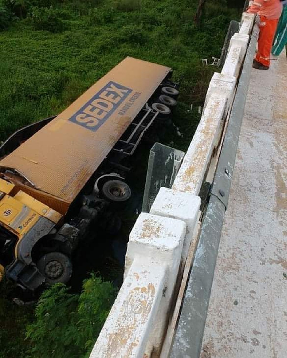 Duas pessoas ficaram feridas após uma carreta dos Correios cair de uma ponte em uma rodovia de Limoeiro do Norte, no Ceará, na manhã desta sexta-feira (19). O acidente ocorreu no KM 191 da BR 116.