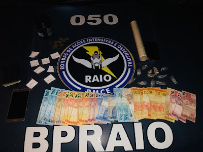 No dia 08/06/2020 por volta das 17h, a equipe RAIO 02 em patrulhamento de rotina no Bairro Recreio abordaram dois suspeitos, que após realizada a busca pessoal foi encontrada 1 “trouxinha” de maconha com um dos abordados, indagado sobre a droga ilícita, os mesmos confessaram que realmente vendiam o material em uma residência ali próximo, com a autorização dos mesmos foi realizada busca no interior da residência, onde foi localizado o restante da droga ilícita e o dinheiro arrecadado com a venda dos produtos. Os dois acusados foram conduzidos à delegacia de Tauá para realizarem os procedimentos cabíveis.