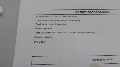 Trata-se de fato ocorrido no ano de 2009 em que a vítima teria sido esfaqueada pelo suspeito, no bairro Recreação, localizado na urbe de Mombaça/CE.