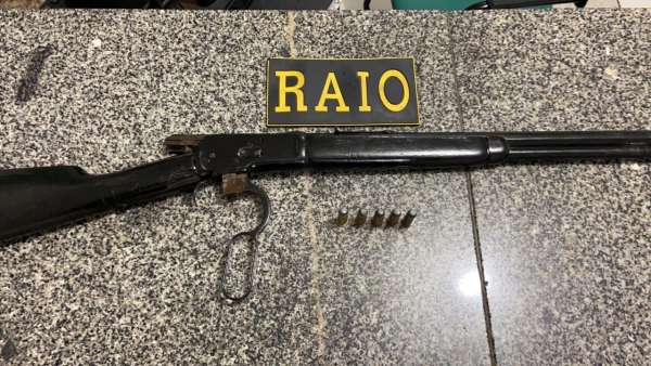Logo após, os militares ficaram sabendo que o suspeito havia escondido algo em uma mata próximo de residências, onde a equipe, mais uma vez se deslocou para a localidade de Riachão e, após varredura, localizou o rifle.