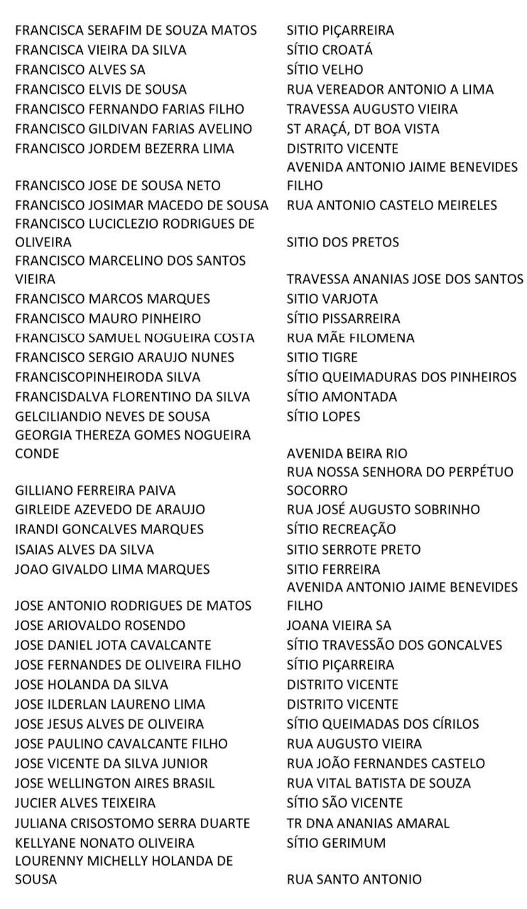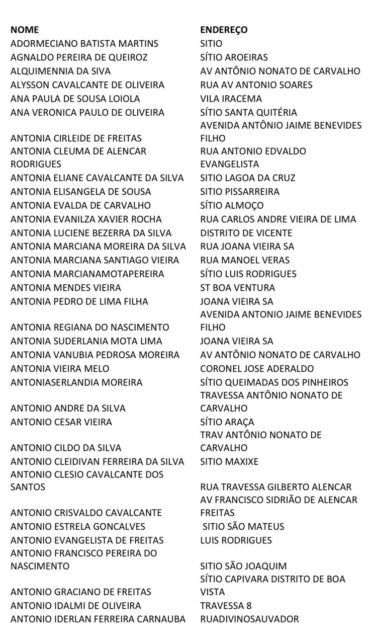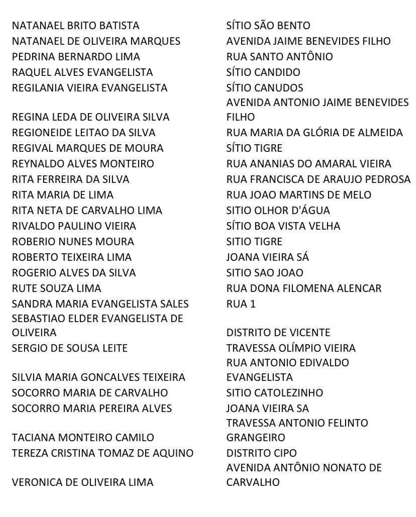 Foi divulgada a lista com o nome das pessoas aptas a receber a vacinação contra a covid-19 em Mombaça com faixa etária entre 35 à 45 anos.