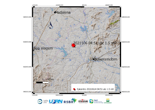 Nesta segunda-feira (14), às 04h51min, um tremor de terra de magnitude preliminar 1.5 mR, foi registrado pelas estações sismográficas operadas pelo Laboratório Sismológico da UFRN na comunidade de São Joaquim, no Distrito de Passagem, zona rural de Quixeramobim.