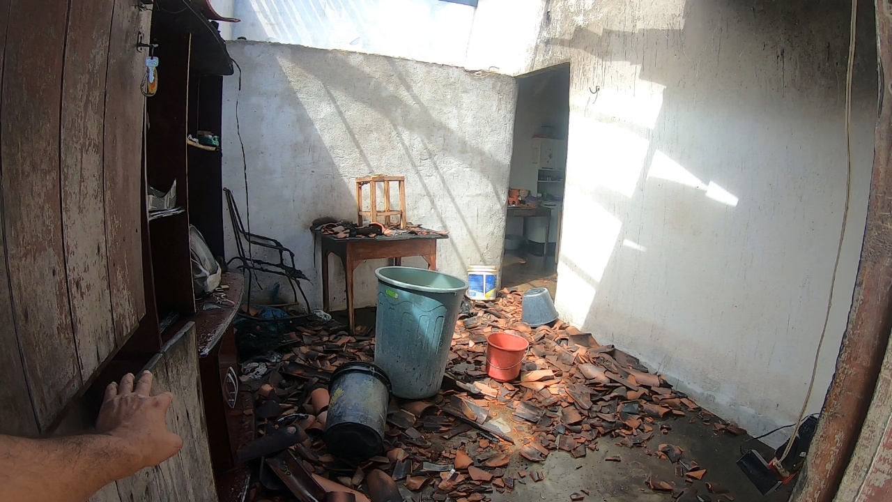 A casa que reside pelo menos dois moradores, teve móveis e telhado destruídos, as chamas foram debeladas por moradores, não houve registros de feridos.