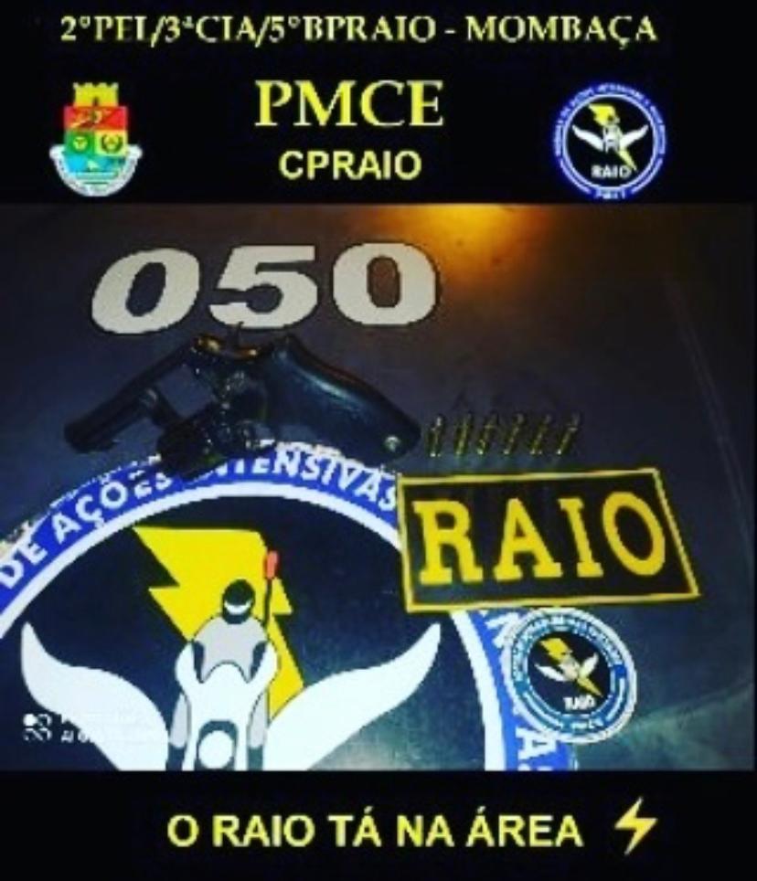 Neste domingo, dia (08) por volta das 22:40h, a equipe RAIO 02 de Mombaça, recebeu uma denúncia de que um indivíduo estava portando uma arma de fogo em uma praça na Zona Urbana da cidade. De imediato, a composição se deslocou até o local onde localizou o suspeito com as características repassadas, sendo apreendido com ele um Revólver Cal .38  com 6 munições intactas. Foi dado voz de prisão ao infrator, sendo posteriormente conduzido para a Delegacia Regional de Senador Pompeu, onde foram adotadas as medidas cabíveis.