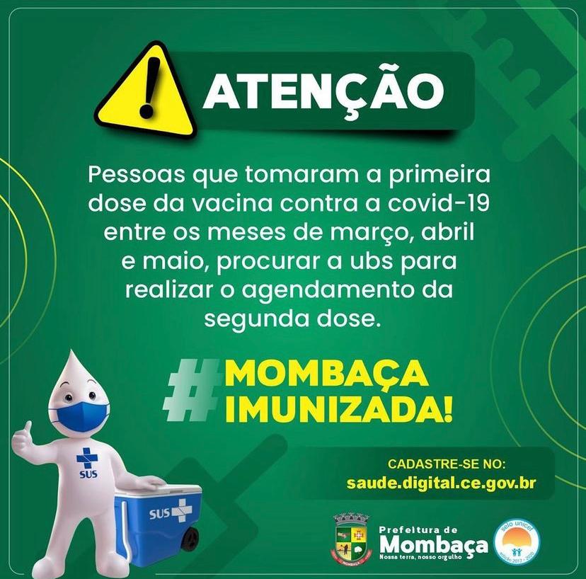 “Todos aqueles que tomaram a primeira dose da vacina contra a COVID-19 entre os meses de março, abril e maio, já podem procurar a sua UBS para realizar o agendamento da segunda dose.”